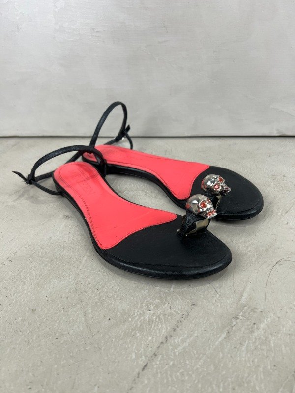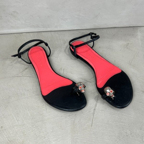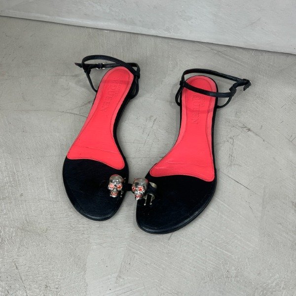 Sandalias Vintage de un solo dedo, con calavera metálica y strass Swarovski incrustados, de cuero hechas en España. Nuestro calzado está sanitizado en su interior para mayor seguridad.