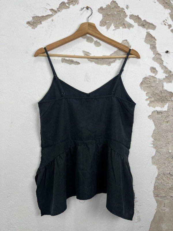 Talle S: busto 42cm, cintura 45cm, largo desde hombros (regulable) 58cm.