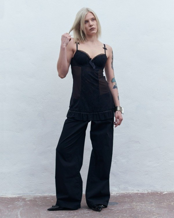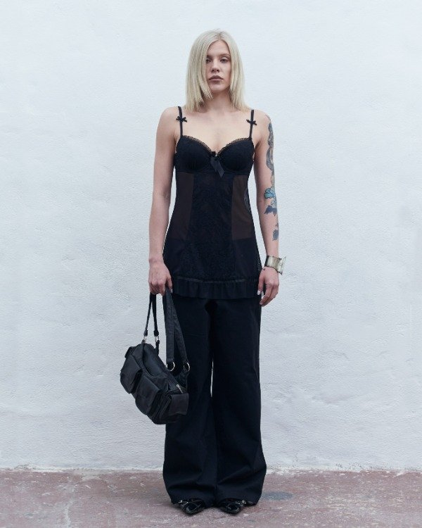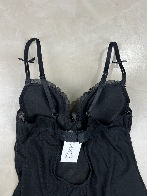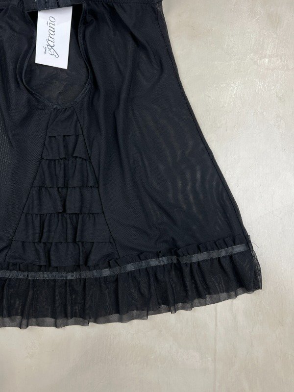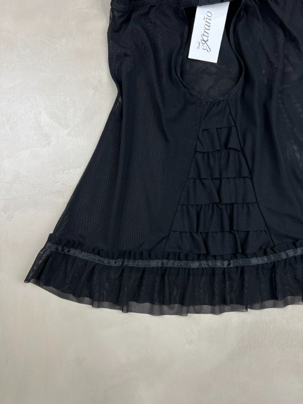 Talle S tasa 90, busto de sisa a sisa 42cm aprox (3 medidas de regulado), cintura 38cm hasta 42cm, cadera 47cm sede hasta 51cm, largo total 60cm (desde donde termina el bretel).