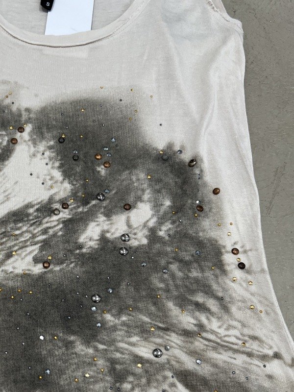 Talle S/M: busto de sisa a sisa 41cm, cintura 34cm, largo total (desde la base superior del hombro) 84cm adelante y atrás 88cm.
