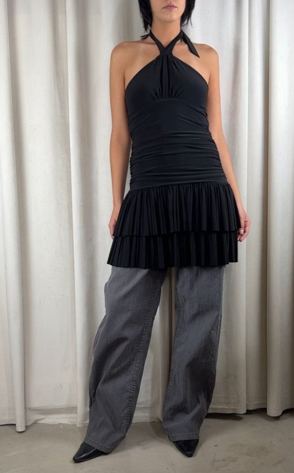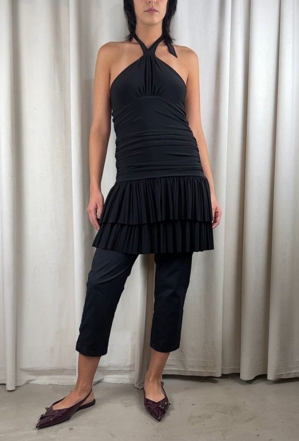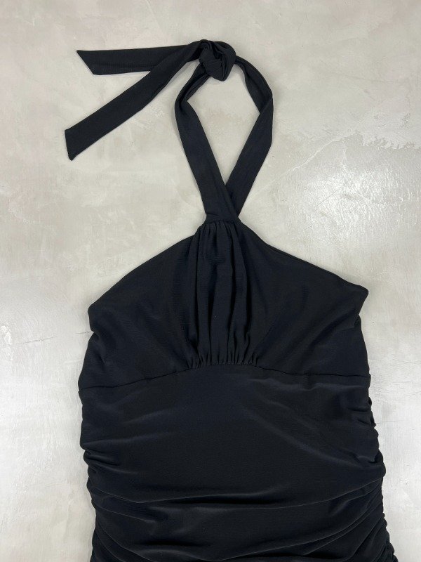 Vestido negro de lycra de super calidad que genera una caída incre, con cuello halter regulable. Te dejamos algunas formas simples de usarlo y podes ver más en el reel de nuestro instagram.